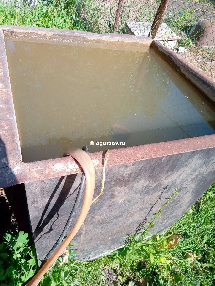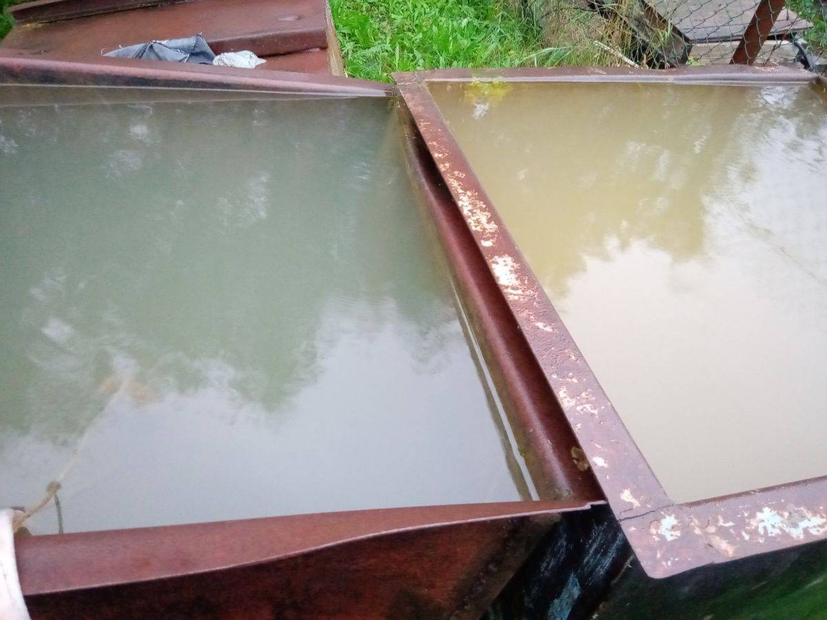 Емкости для полива. Вода стала «ржавой» от окислившегося железа.