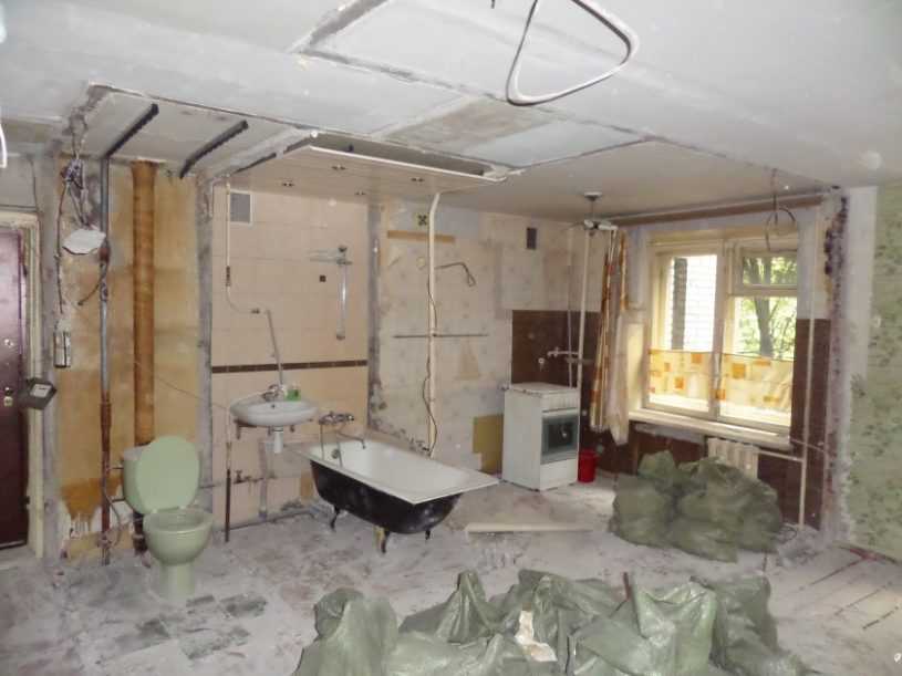 После того как решение о перепланировке было принято, следует начать работы по демонтажу разделяющей стены, сантехнических изделий и отделочных материалов.