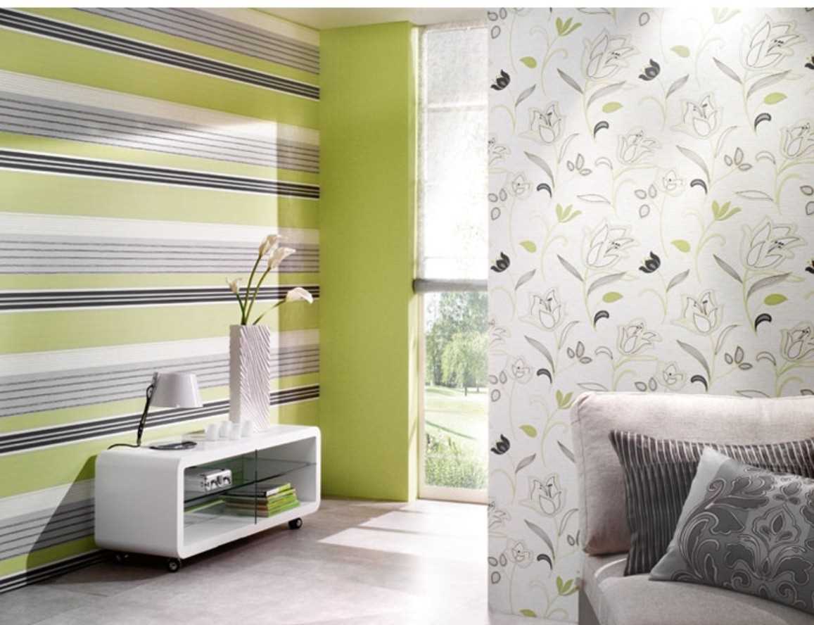 Комбинирование обоев разных цветов. Чтобы такой дизайн был гармоничен, нужно выбирать для одного вида обоев активный, а для другого нейтральный цвет.