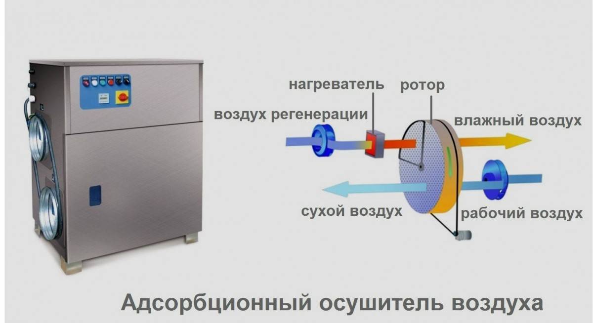Здесь есть камера, содержащая адсорбент (или вещество, которое впитывает воду). Через неё прогоняется поток, оставляя лишнюю влагу.