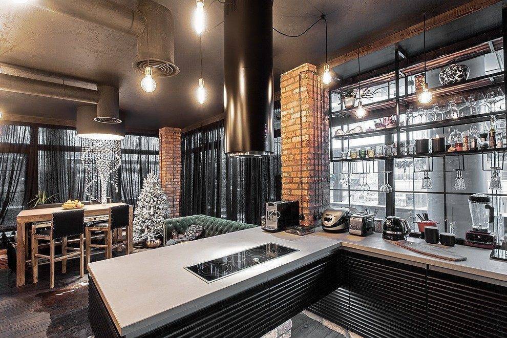 Совет! Для оформления кухни в стиле лофт выбирают современную бытовую технику, сверкающую хромом или сталью. Помещение максимально урбанистическое, но с минимальным набором мебели.