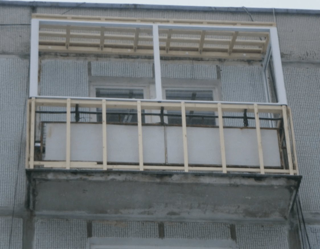 Закрытый балкон перед наружной отделкой нуждается в укреплении перекрытий путем конструкции металлического каркаса, потому что бетонный балкон не выдержит закрытого монтажа.