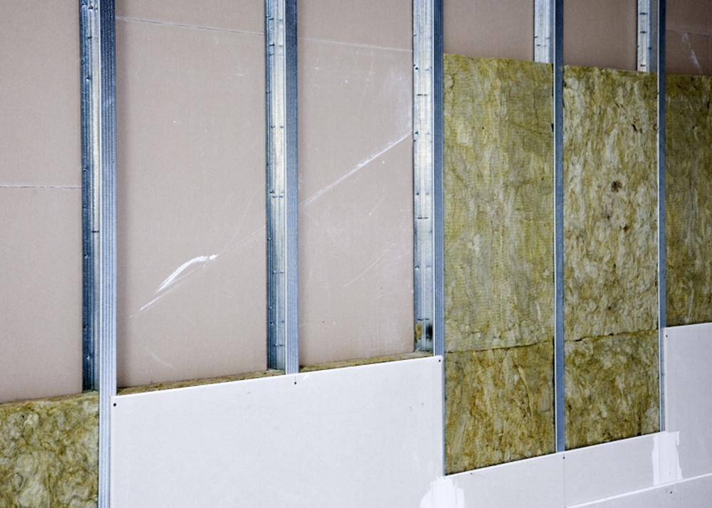 Для утепления могут использоваться рулонные и листовые материалы. Хоть минеральная вата и стоит дорого, но её оптимально использовать для утепления межкомнатной перегородки из гипсокартона. Для этого одна сторона каркаса обшивается ГКЛ, потом вставляется минвата и обшивается вторая сторона. Утеплителем должны быть заполнены все пустоты.