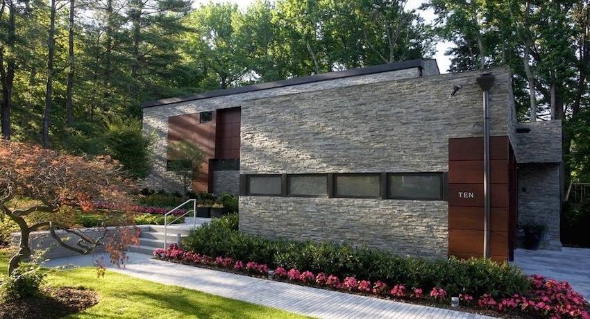 Облицовку стен таким способом можно легко осуществить своими руками. Здание, отделанное данным материалом, приобретает стильный и современный вид. Стоит помнить, что текстура камня хорошо сочетается с деревянными и металлическими декорациями. Оттенки листов можно подобрать под окружающие объекты и предметы ландшафта.