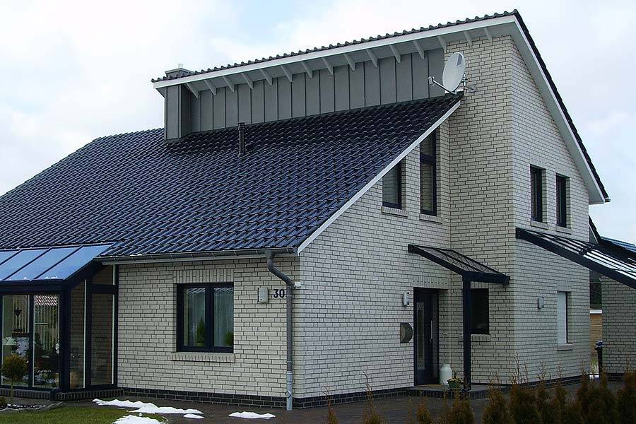 · Если дом уже построен, то облицовка дома под кирпич потребует и расширения кровли. Часто старая кровля не может обеспечить качественную защиту увеличенной по толщине стены от осадков.
