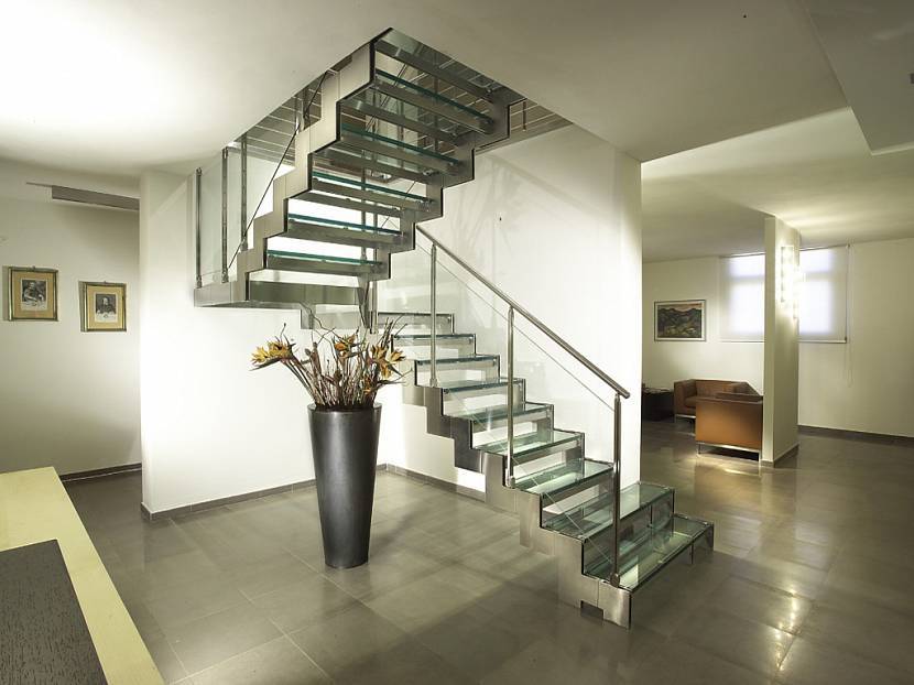 - Стеклянная лестница легче каменной, но тяжелее собранной из дерева.