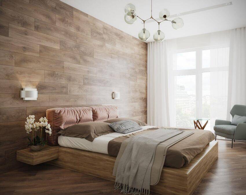 Фото ламината на стене в спальне