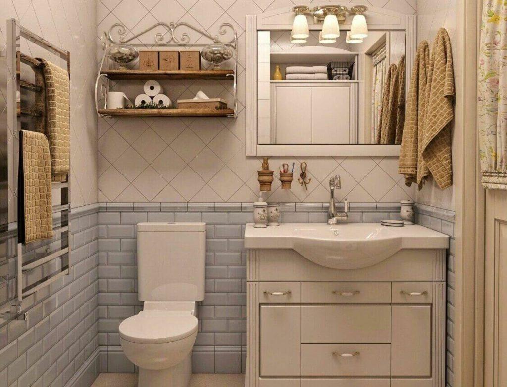 Французский стиль отличается своим уютом. Он придает легкость пространству, изящность. В этом стиле используются коврики, полотенца изо льна. Стены украшаются картинами и мозаиками.