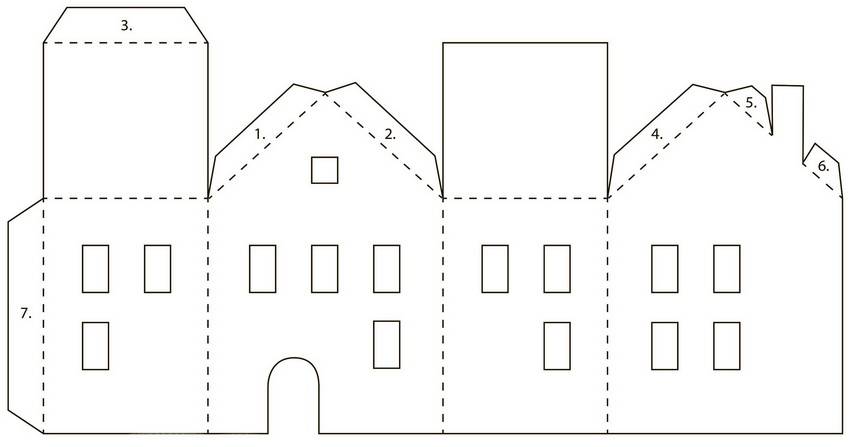 Для создания освещения применяются отрезки светодиодной ленты, блок питания. На задней стенке дома располагаются выключатели, позволяющие освещать каждую комнатку отдельно. Еще интереснее построить целый волшебный город. Для работы потребуется: