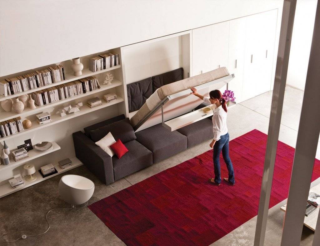 Шкаф-кровать в интерьере гостиной