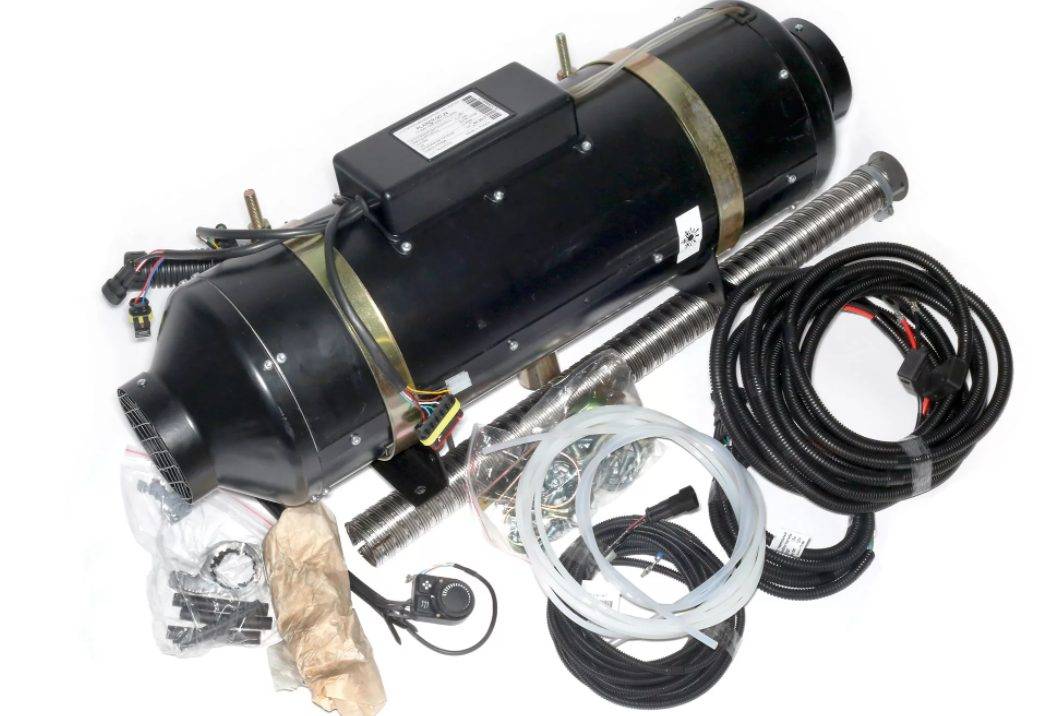 Установка, осуществляющая обогрев кабины или рабочего места водителя с помощью потоков теплого воздуха, получило название воздушного обогревателя. Конструкция включает в себя нагревательный элемент, насос для подачи дизельного топлива, пускорегулировочную аппаратуру и провода для соединения элементов. Приборы выпускают российским (г. Самара) и характеризуются доступной ценой при высокой эффективности, как свидетельствуют отзывы. На фото – отопительная автомобильная установка.