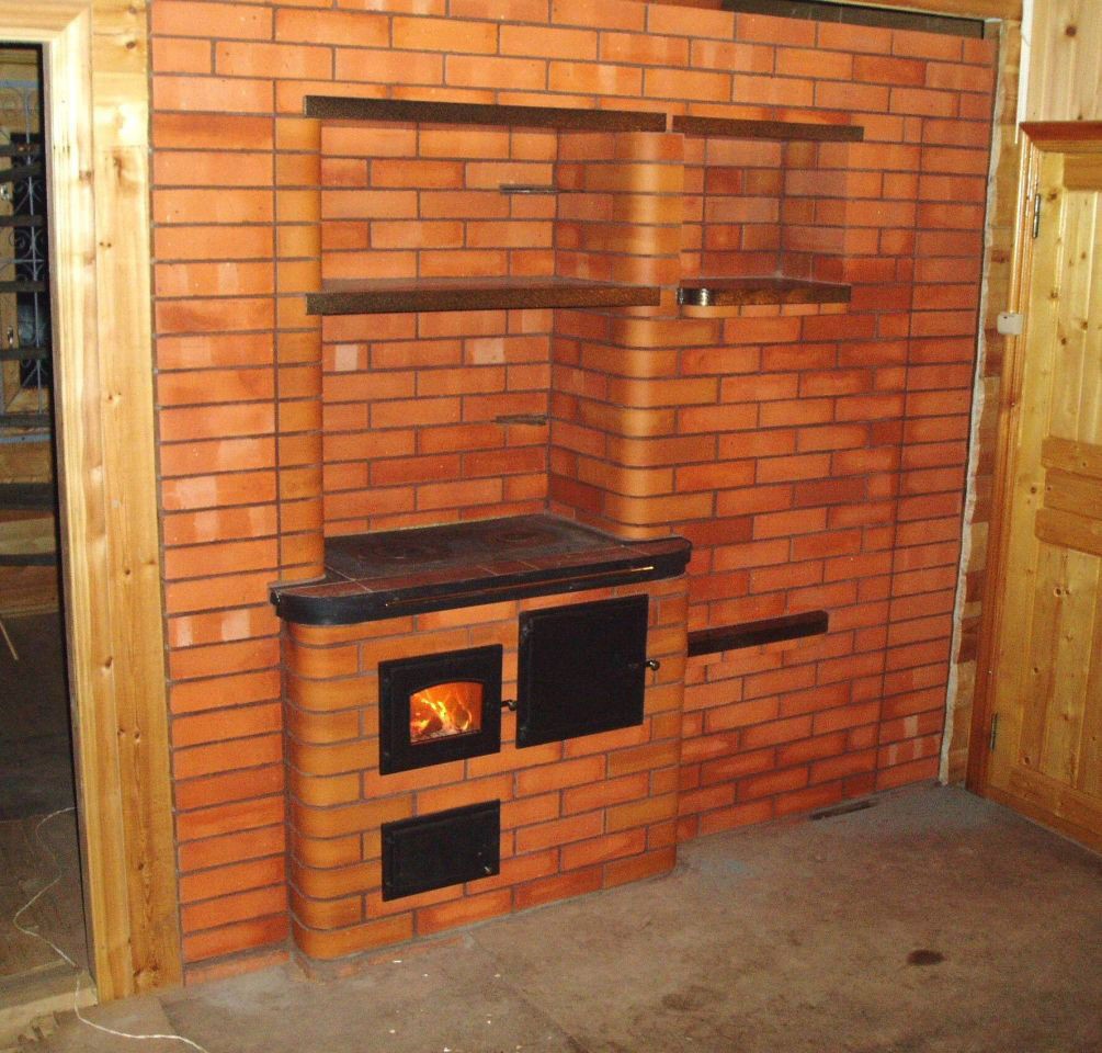 Устройство для сжигания топлива обкладывается шамотным кирпичом, который ставится на ребро. Над топочной камерой размещается варочная плита. При желании можно установить две конфорки.