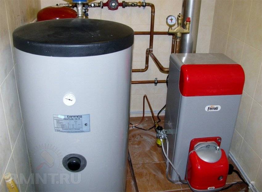 Поскольку объём самого теплообменника в котле небольшой, водоизмещение системы получается поднять в основном за счёт увеличения диаметра труб. Другой альтернативой такого рода можно назвать установку теплового аккумулятора. При грамотном подходе можно реализовать накопление тепла только после нагрева основной системы, что поможет ускорить прогрев дома и решить проблему с конденсатом.