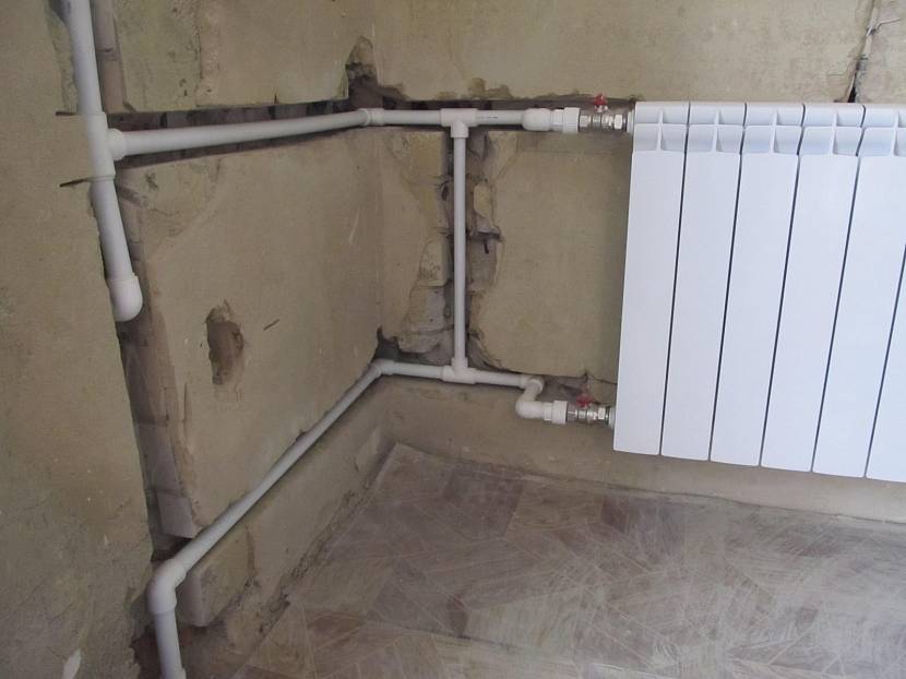 Монтаж системы обогрева внутри стен подразумевает обязательное составление технического плана. Чертеж коммуникаций должен включать ссылки на места, где планируется вывод труб к радиаторам, точки резьбовых сочленений. Согласно подготовленному рисунку бетонные и кирпичные вертикальные перегородки штробят, выполняя углубления под будущий трубопровод. Их размер рассчитывают, суммируя: