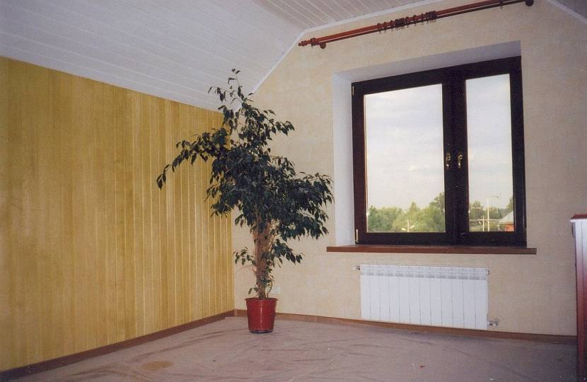 Вверху (под подоконником) и в местах последующего крепления плинтуса холст тщательно прижимают к стене, используя шпатель. Излишки подрезают обойным ножом.