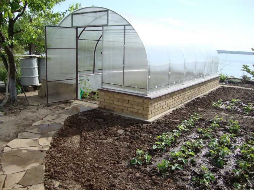 Например, если в грунте планируется выращивать невысокие растения, то высота теплицы от верхнего дверного карниза до потолка составит 40–60 см. Если требуется производить выращивание растений на стеллажах, то к высоте надо прибавить габариты полок.