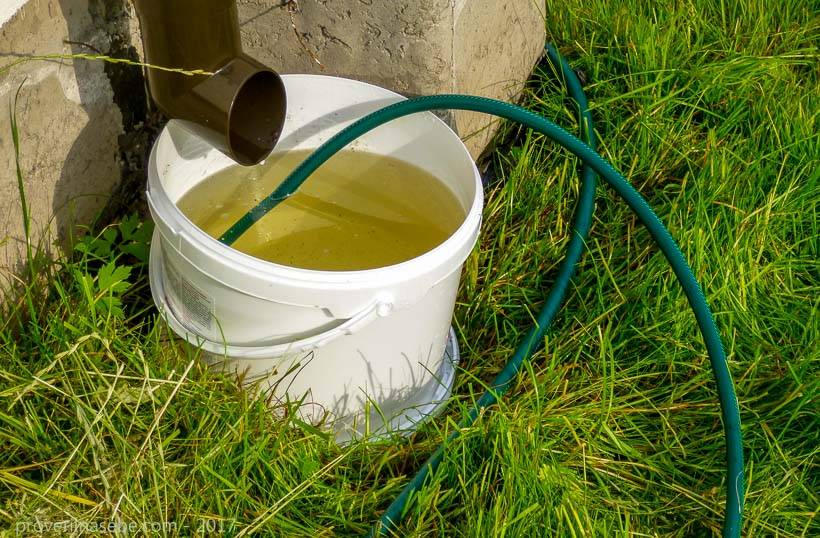 Правда, вместо ведра можно поставить бочку, но это не всегда удобно. Да и с эстетической точки зрения огромная синяя бочка, да еще и не одна, а по количеству водосточных труб, явно не станет украшением вашего сада.
