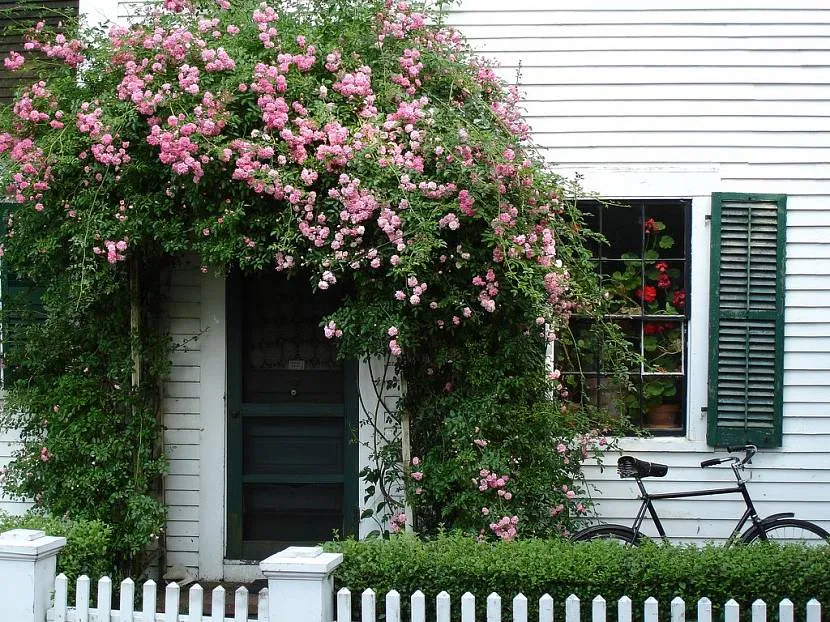 Палисадник в деревенском стиле. Оформляется достаточно небрежно, высаживают неприхотливые растения, чаще всего многолетние, используется плетеная изгородь или штакетник.