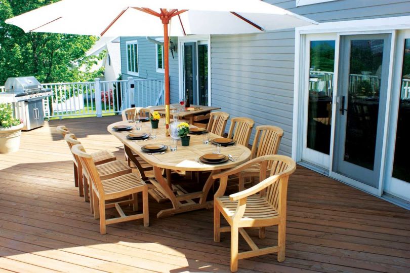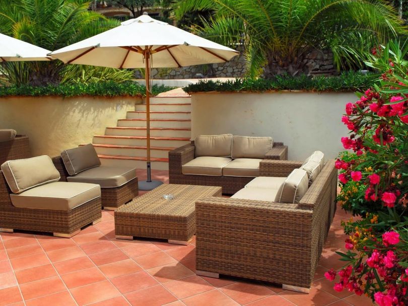 Главное, без чего не обходится патио — это мебель. Эти предметы уличного обихода должны быть сделаны из влагостойких материалов.