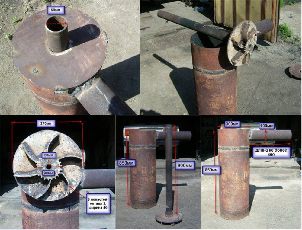 Для любой схемы обязательным является воздушный регулятор, который определяет продолжительность горения. Это диск из стали толщиной 5 мм. Посредине вварена труба, по которой воздух поступает в камеру. По мере того как сгорает топливо суточной нормы закладки, диск постепенно опускается. Для беспрепятственного скольжения он делается несколько меньше внутренних размеров топочного отделения. Снизу распределителя расположена крыльчатка высотой 5 см, с большими размерами ускоряется процесс горения, что нежелательно.