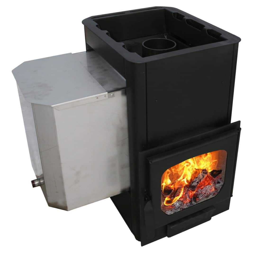 - печь, оснащенная водяным баком, который установлен на боку;