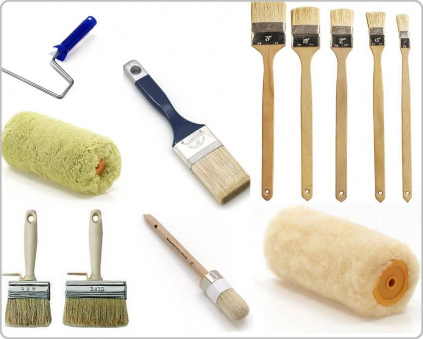 - Краску наносят на поверхность при помощи кисти, валика или краскопульта