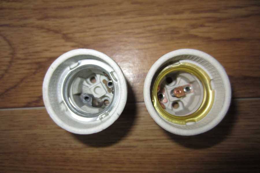 Чтобы избежать проблемы, разберите патрон, если пластинки потемнели или оплавились, зачистите их надфилем (напильник с мелкой насечкой). Если нужно, то немного подогните контакты, чтобы приблизить их к цоколю. Но лучше всего сразу заменить пластмассовый патрон на керамический.