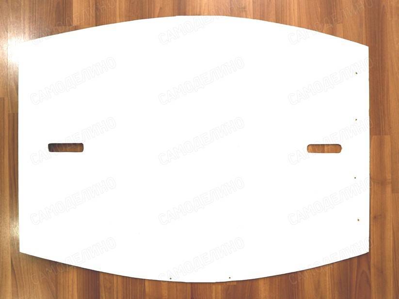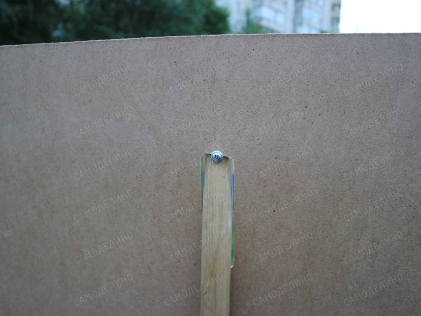 Есть еще более интересный дизайн: выходной. Этот вид покрытия, безусловно, фанерный. Прибейте верхнюю планку так, чтобы осталось пустое место. Внутрь вставляется лист фанеры. А чтобы противоположный конец не свисал, прибивают ножки – небольшие кусочки бруска.