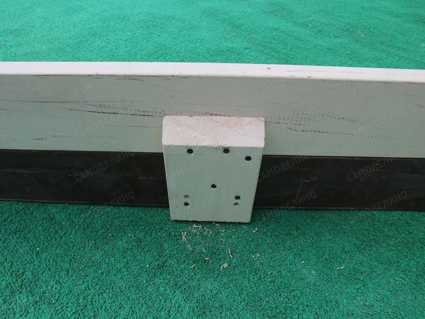 При помощи шлифованного бруса скрепите спинки скамеек (они же — откидные части крыши). При открытии крышки он превратится в упор для спинки.