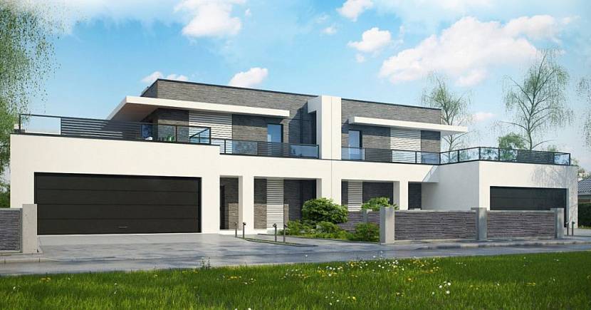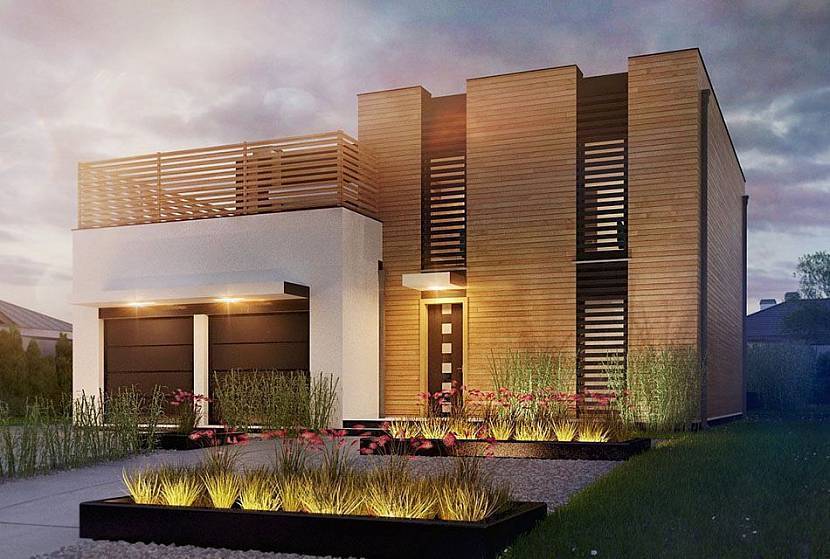 Современный дом в футуристическом стиле с гаражом на два авто и двумя гостинымиИсточник belprim.ru