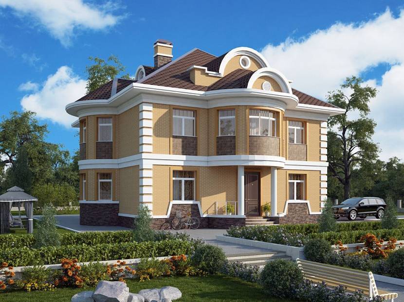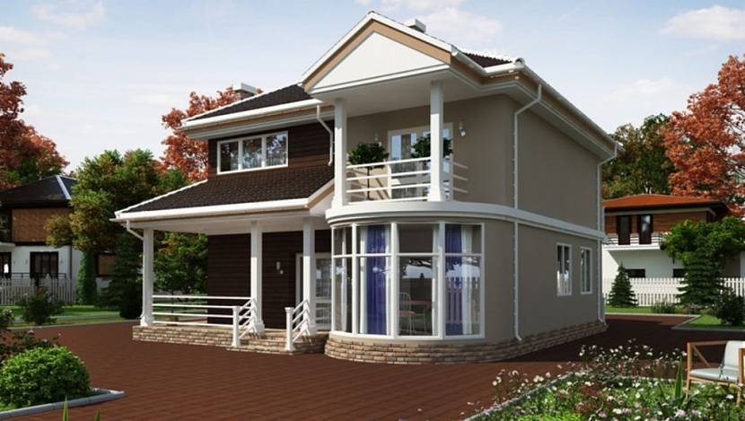 Двухэтажный особняк в европейском стиле с комбинированным фасадом, площадь – 140 м²Источник bepeza.ru