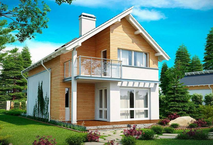 Домик в два этажа для узкого участка энергосберегающей конструкции, площадь – 126 м²Источник assz.ru