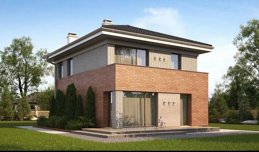 Компактный кирпичный домик в два этажа в минималистическом стиле, площадь – 113 м²Источник sip-panelis.ru