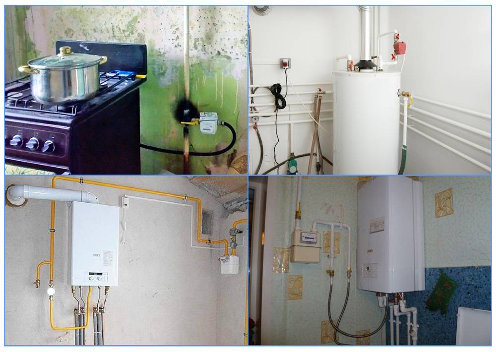 - Установка нового взамен старого или дополнительного оборудования. Если в помещении устанавливается водонагревательная колонка (к примеру, в ванной комнате квартиры), для подачи газа придется протягивать трубу из кухни в другую комнату. Аналогичная ситуация может возникнуть и в индивидуальном коттедже при размещении новых или дополнительных приборов: газовых котла, варочных плит, колонок.