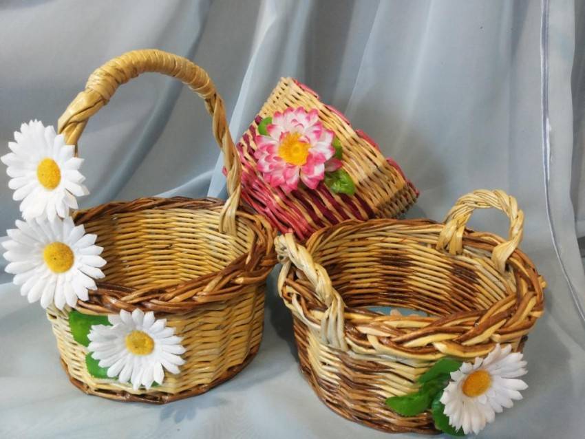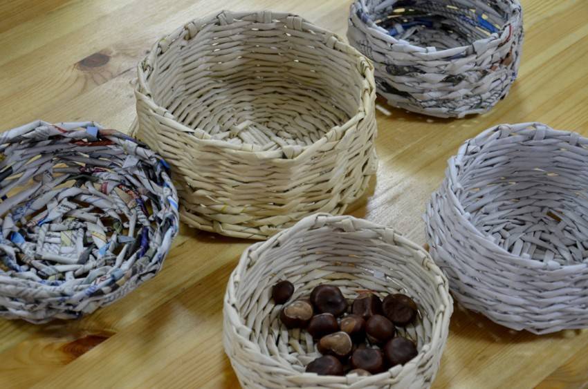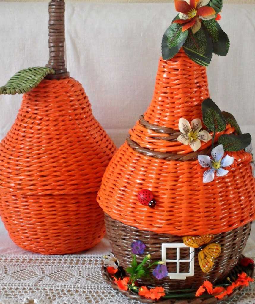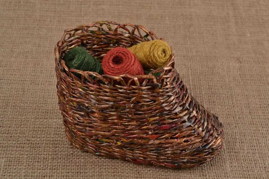 Корзинки из газетных трубочек имеют различную форму. Даже начинающим можно сплести своими руками разнообразные конфигурации.