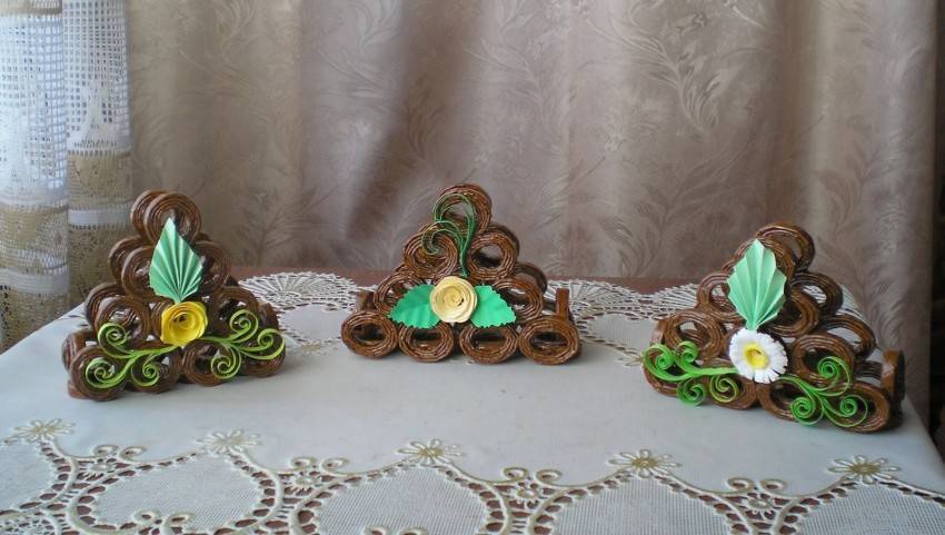 - сделав нужный диаметр дна завернуть и поднять трубочки кверху.