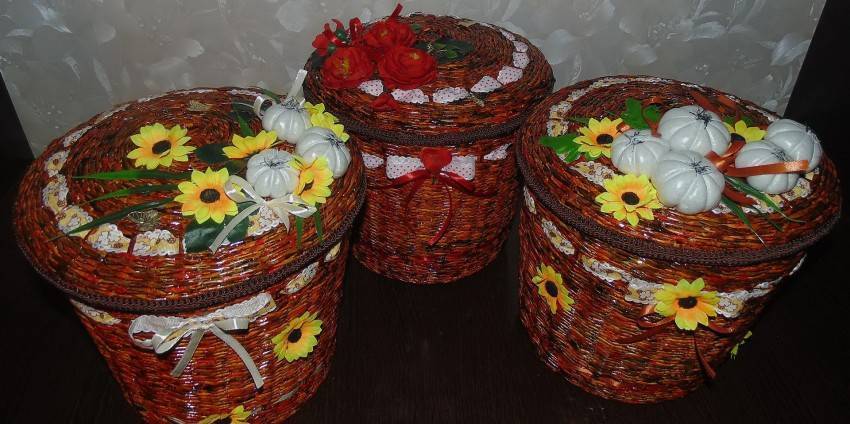 Корзиночки и шкатулки, сплетенные из газетных трубочек, обладают особой красотой и шармом. Визуально этот материал напоминает натуральную лозу. Преимущество таких изделий в том, что для их изготовления вам не потребуется собирать лозу и плести поделки, прикладывая к этому массу усилий (это бывает достаточно сложно и даже травматично).