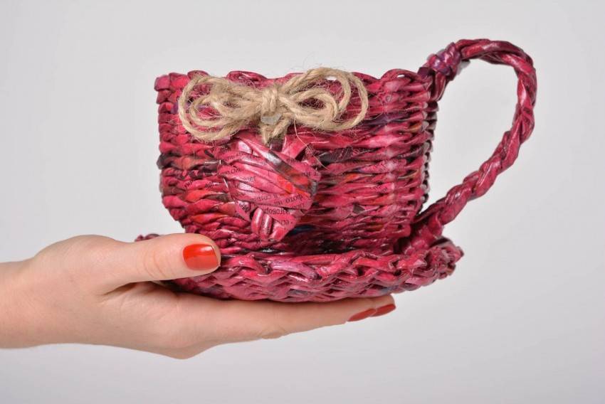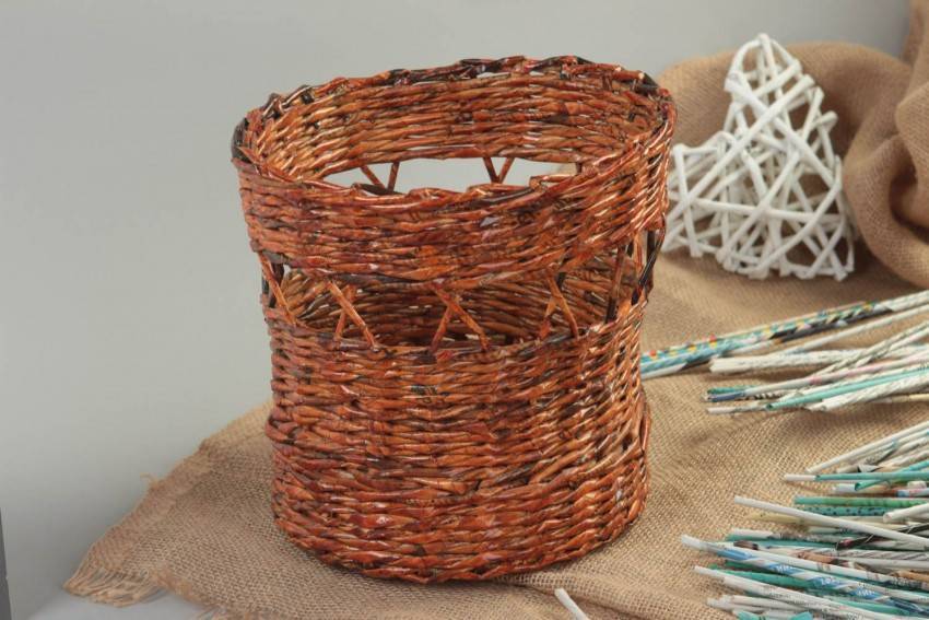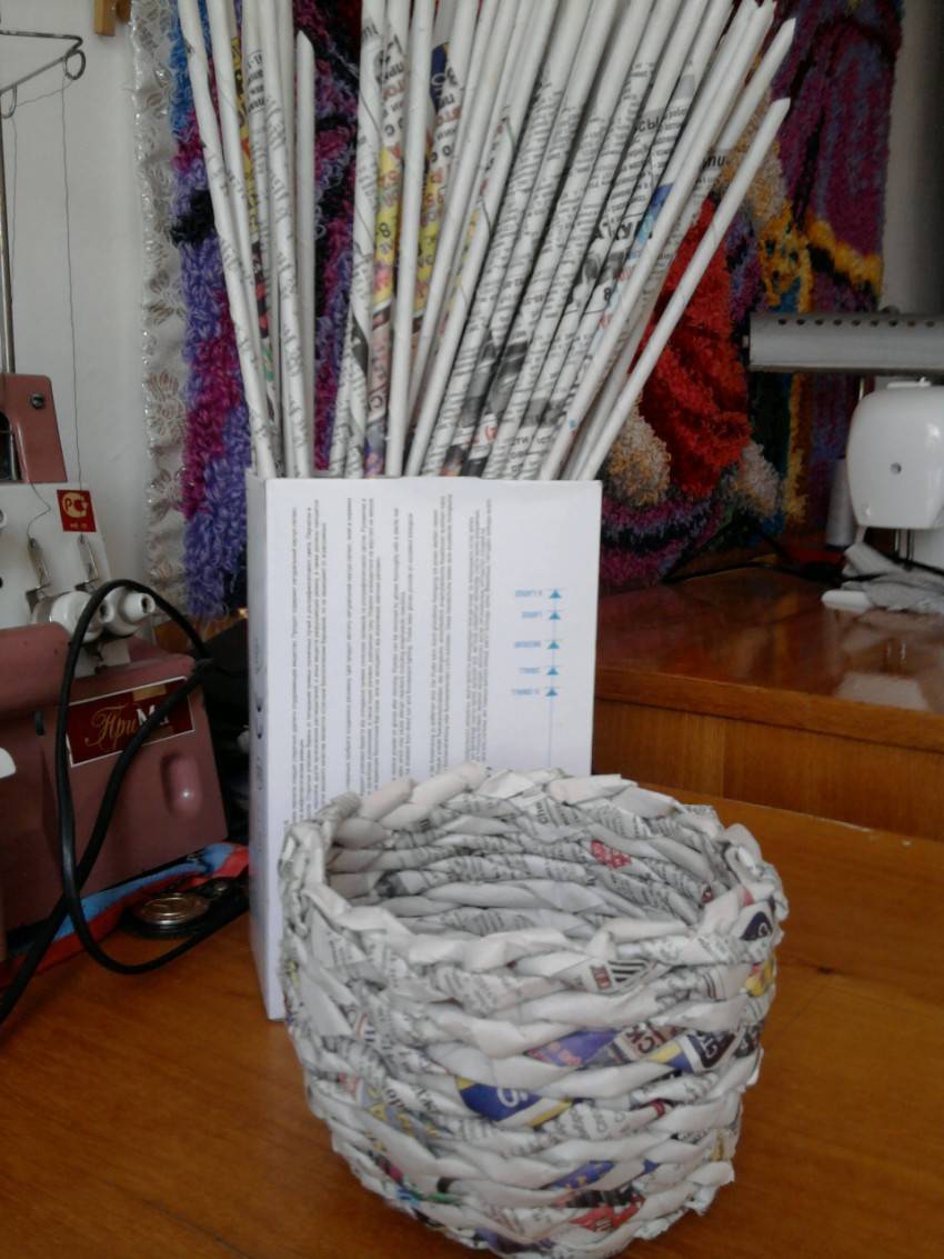 Это важно, так как даже на небольшую корзинку уйдет не один десяток трубочек. Многих начинающих рукодельниц беспокоит вопрос о том, как в конечном итоге будет смотреться изделие, ведь нем видны буквы из газеты