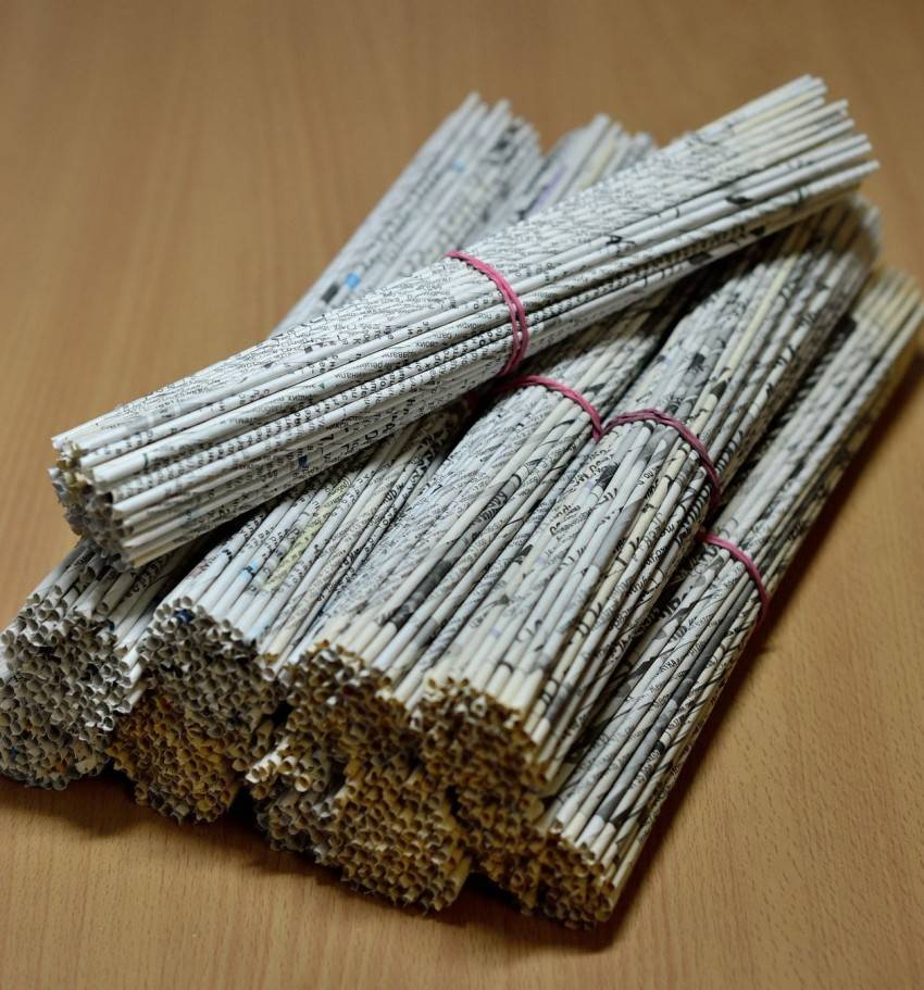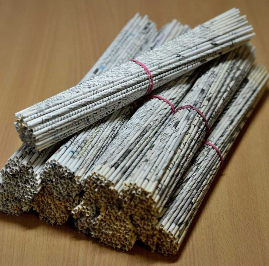Лучше всего использовать газету: она тонкая и мягкая, поэтому оптимально подходит для скручивания в трубочки и дальнейшей работы