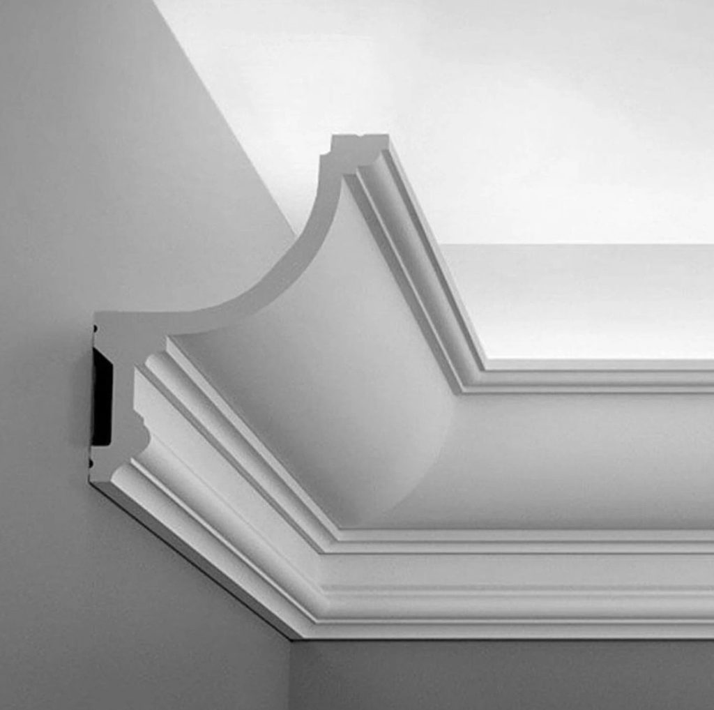 Плинтус потолочный полиуретановый отличается целым рядом неоспоримых преимуществ: