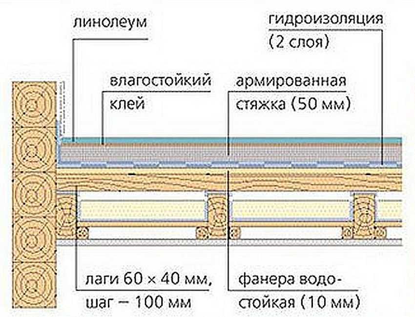 Схема устройства деревянного пола с покрытием из керамической плитки