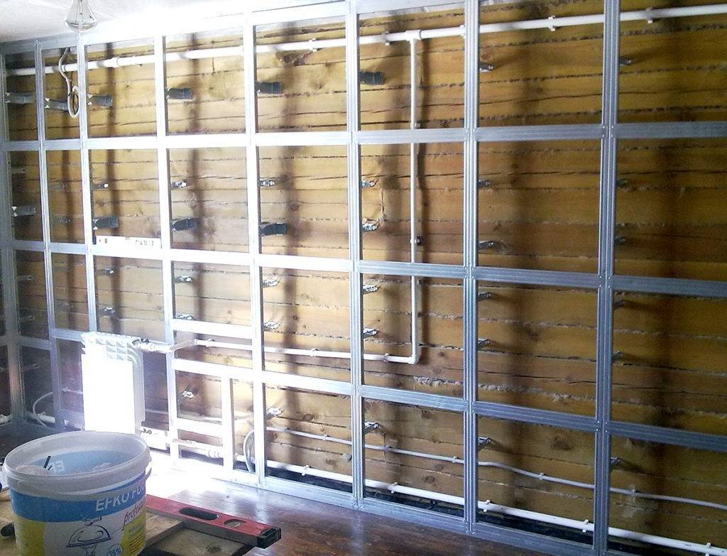 Монтаж плитки в деревянном доме осуществляется с учетом этих особенностей. Для облицовки стен создается специальный каркас из алюминиевых профилей или древесных брусьев.