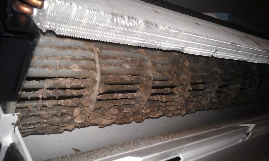 Если кондиционер хорошо дует, но недостаточная температура, возможно засорился радиатор испарителя. Он находится во внутреннем блоке кондиционера. Такая проблема часто встречается у техники, установленной на кухнях.
