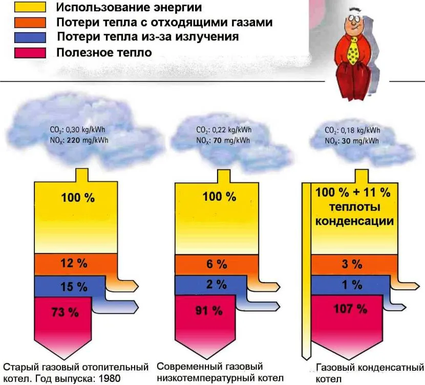 - Экологичность системы. При работе конденсационного котла (с камерой сгорания закрытого типа) количество вредных выбросов снижается на 60-70%.