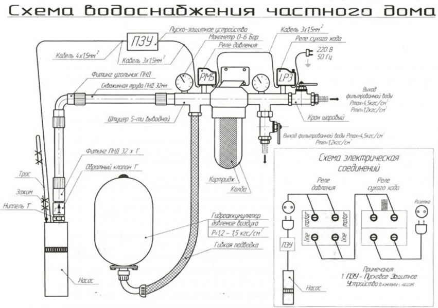 Рис. 5 Водоснабжение частного дома из колодца с гидробаком