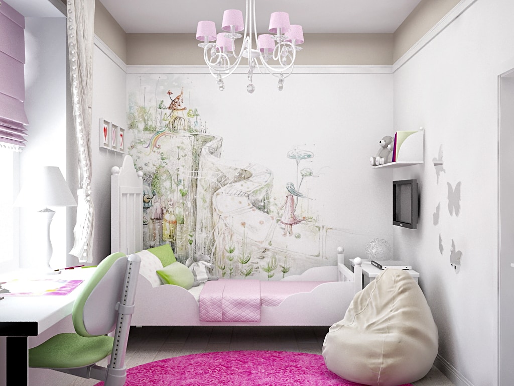В зоне игр допустимы яркие сочные цвета (красный, оранжевый, изумрудно-зеленый). Учить уроки лучше в уголке, в котором стены оклеены спокойными оттенками, например, мятным или лавандовым.