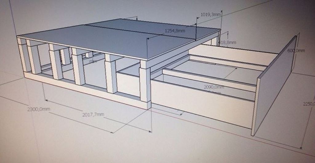 Первый и самый важный этап в сборке выдвижной кровати-подиума это изготовление каркаса.