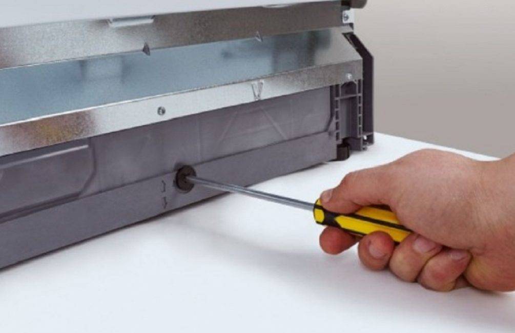 Перед тем, как жёстко закрепить ПММ в нишах или шкафах, их также необходимо выровнять при помощи уровня. Это просто сделать, поскольку встраиваемые машины также снабжаются ножками с регулируемой высотой.