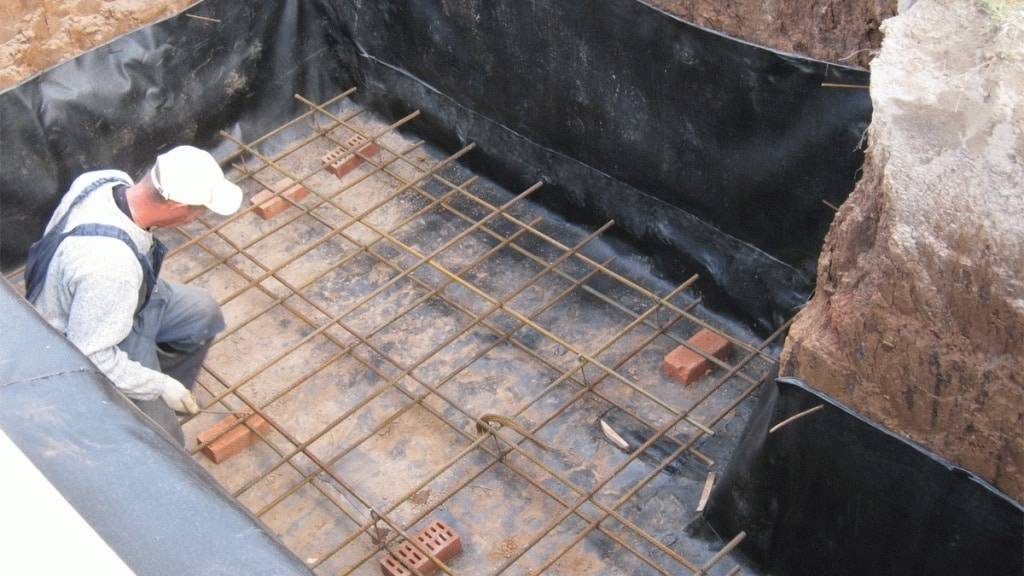 - Конструкции защищают гидроизоляцией с наружной и внутренней стороны, приклеивая ее в 2 слоя.