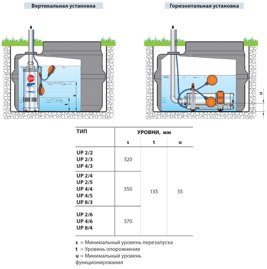 Установка погружного насоса любого типа заключается в полном погружении его в воду. Практически каждый агрегат дополняется специальным поплавком, который значительно упрощает процесс монтажа. Благодаря данному дополнению уровень насоса держится на высоте от 2 до 3 м.
